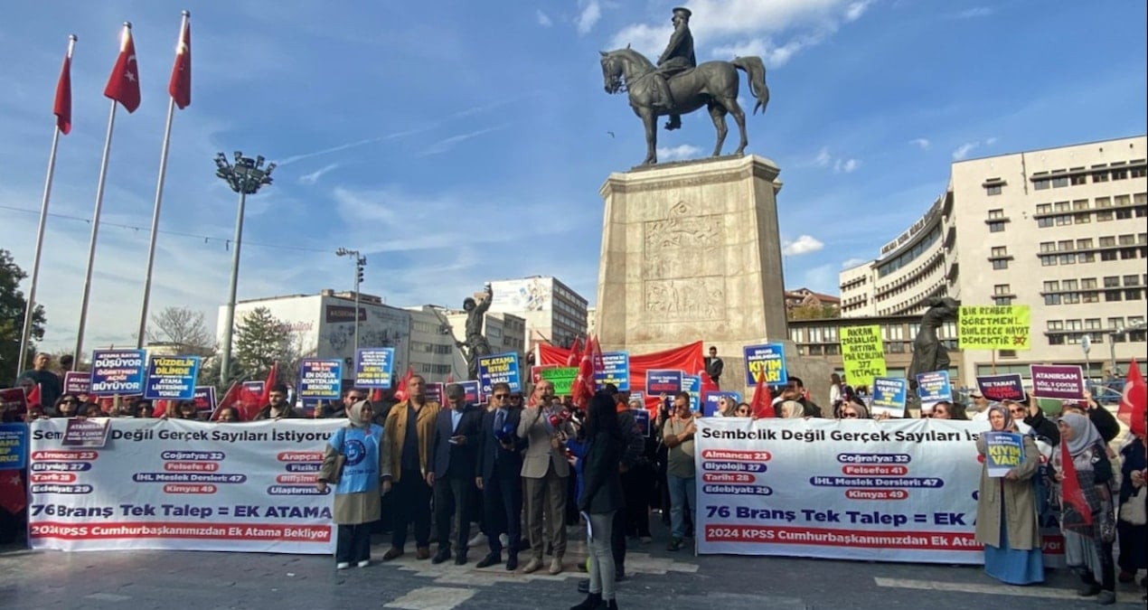 Türkiye’de Ağrı’dan Bayburt’a kadar 39 ilin nüfusunu aşan bir durum ortaya çıktı. 2024 KPSS’de yüksek puan almasına rağmen atanamayan binlerce öğretmen, Türkiye’nin dört bir yanından gelerek Ankara Ulus Meydanı’nda toplandı. Üç gün önce yapılan eyleme Türk Eğitim-Sen de destek verdi. Öğretmenler, bir kez daha ek atama taleplerini dile getirdi.