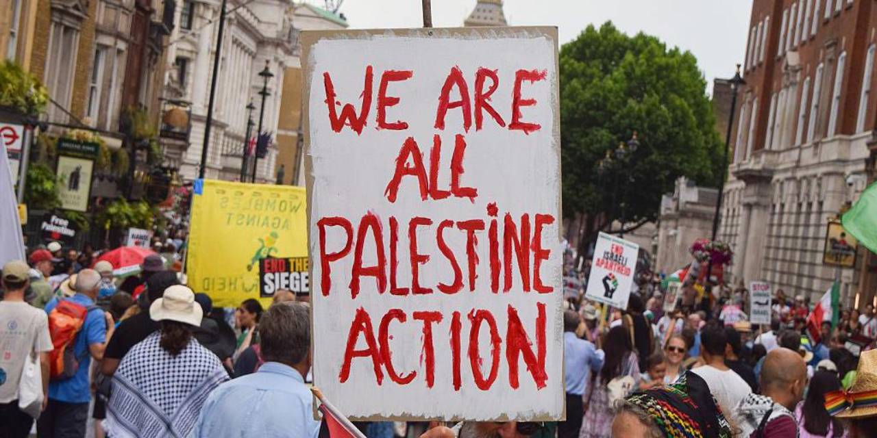 “Palestine Action”a (Filistin Hareketi) destek için başkent Londra’daki Parlamento Meydanı’nda yüzlerce gösterici toplandı. Eylemciler, yanlarında getirdikleri boş pankartlara “Soykırıma karşıyım, Palestine Action’ı destekliyorum” yazdı.