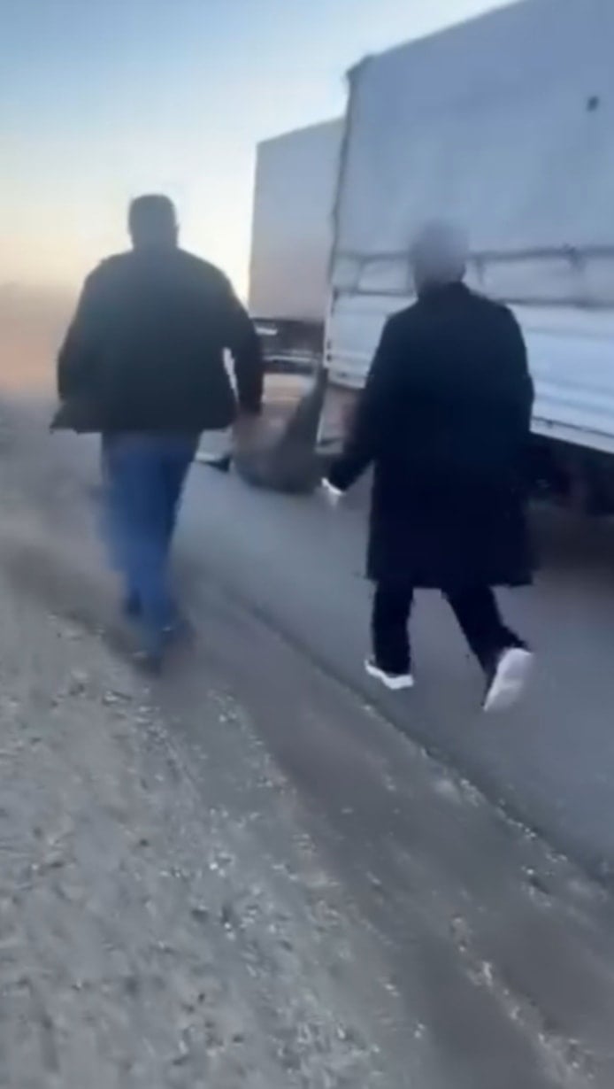 Kamyonete bağladığı atı dakikalarca sürükledi! Yardımına diğer sürücüler koştu