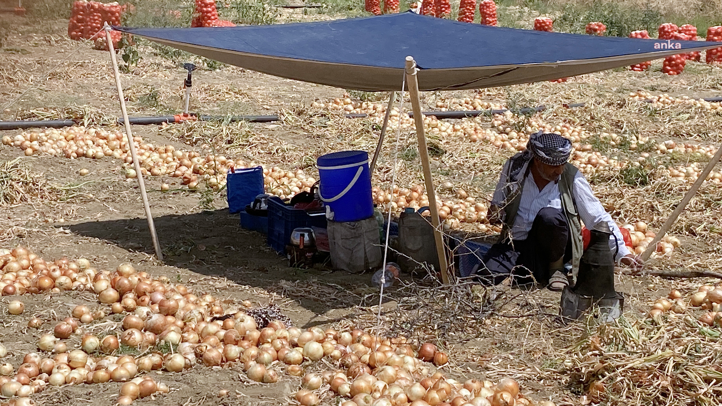 Aydıncık ilçesinde soğan hasadı yapan emekçilerden Süleyman Kayısı, “Mal sahipleri de perişan olmuş, biz de perişan olmuşuz. Mal para etmezse biz de para almıyoruz. Türkiye çapında şu an çiftçi perişan bir durumdadır” diye konuştu.