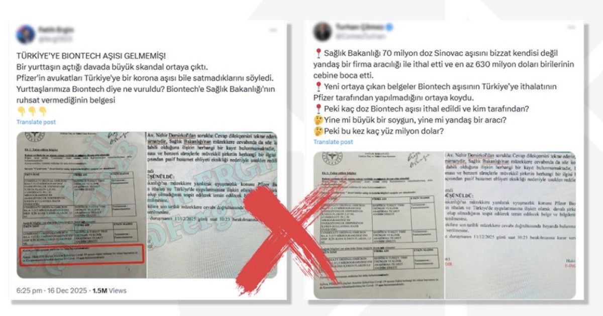 Bu savunma tutanağına ulaşan bir sosyal medya provokatörü, Türkiye’de hiç BioNTech aşısı yapılmadığı yalanını ortaya attı.