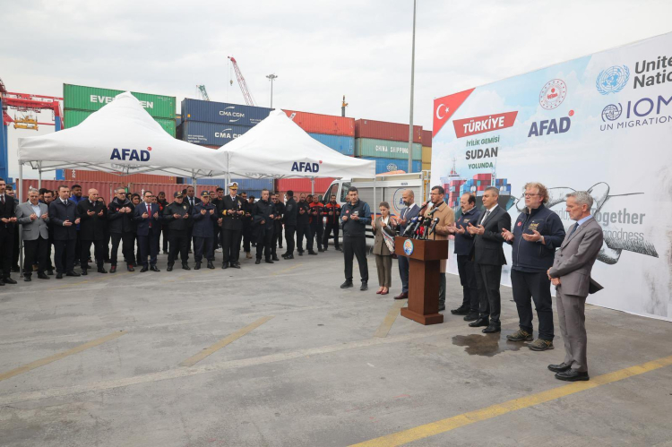 Toplam 30 bin çadırın ilk bölümü olan 10 bin 80 adet çadır, İçişleri Bakanlığı AFAD Başkanlığı ile Birleşmiş Milletler Uluslararası Göç Örgütü (IOM) iş birliğinde, Dışişleri Bakanlığı ve Sudan’daki Türk Büyükelçiliği’nin koordinasyonuyla Port Sudan’a gönderildi. Kalan çadırların ise önümüzdeki günlerde iki ayrı gemiyle daha sevk edilmesi planlanıyor. Törene AFAD Başkanı Vali Ali Hamza Pehlivan, Mersin Valisi Atilla Toros, IOM Sudan Misyon Şefi Mohamed Refaat ve ilgili kurum temsilcileri katıldı.